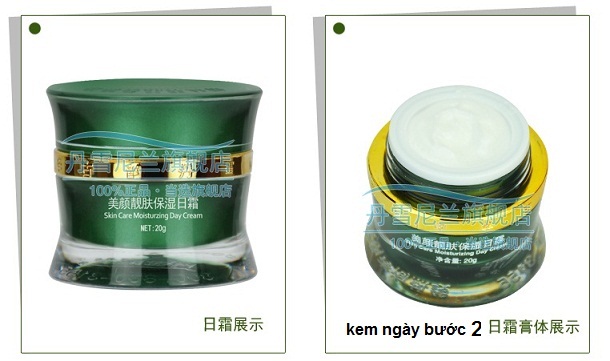 1. Kem dưỡng trắng da giữ ẩm ban ngày (20g): Sản phẩm có tác dụng làm trắng da, giữ ẩm cho da, chống các nếp nhăn, cải tạo những lỗ chân lông lớn, ngoài ra sản phẩm còn có tác dụng chống sự tái sinh của các vết nám, sự thảy đổi tố chất da làm cho da trắng hơn, giữ ẩm tốt hơn.